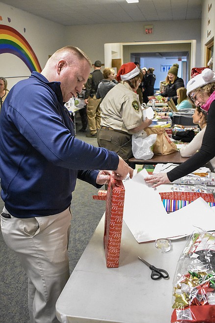 Public safety personnel from around the community came together to help local children shop for presents for their immediate families in Libby Monday.