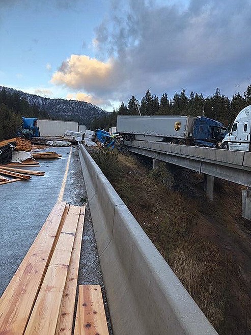 The AP reports Vilyam Veresko, 30, of Moses Lake, died as well after he exited his crashed semi-truck and fell to his death after he jumped over a guardrail in an attempt to avoid oncoming traffic. NBC Montana reports Kyle Rauch, a firefighter for the Frenchtown Rural Fire Department, which provides service to Missoula, was seriously injured after he slipped on some black on the roadway, fell over a bridge deck and went 40 feet down an embankment.
