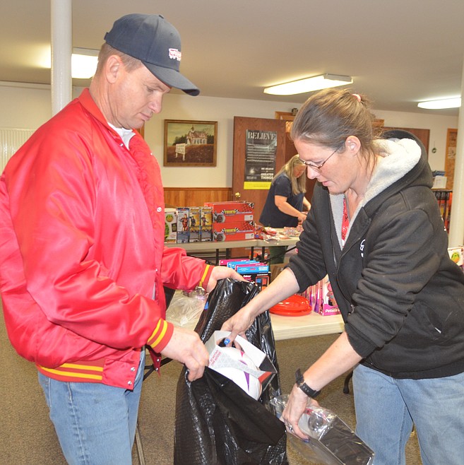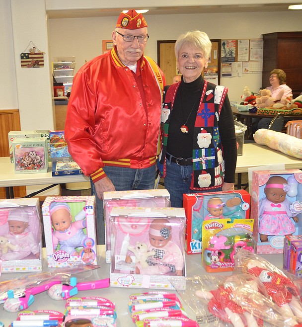 Detachment coordinator Mauri Morin and his wife Barbara — and other volunteers — were on hand all day last Saturday, Dec. 15 at Gospel Mountain Assembly of God Church in Thompson Falls to accommodate the pickup of toys by Toys for Tots applicants.