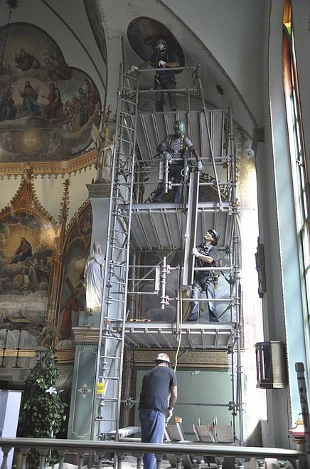 Over the summer, Grand Scaffolding of Billings began installing scaffolding around the mission in St. Ignatius so that murals could be restored.