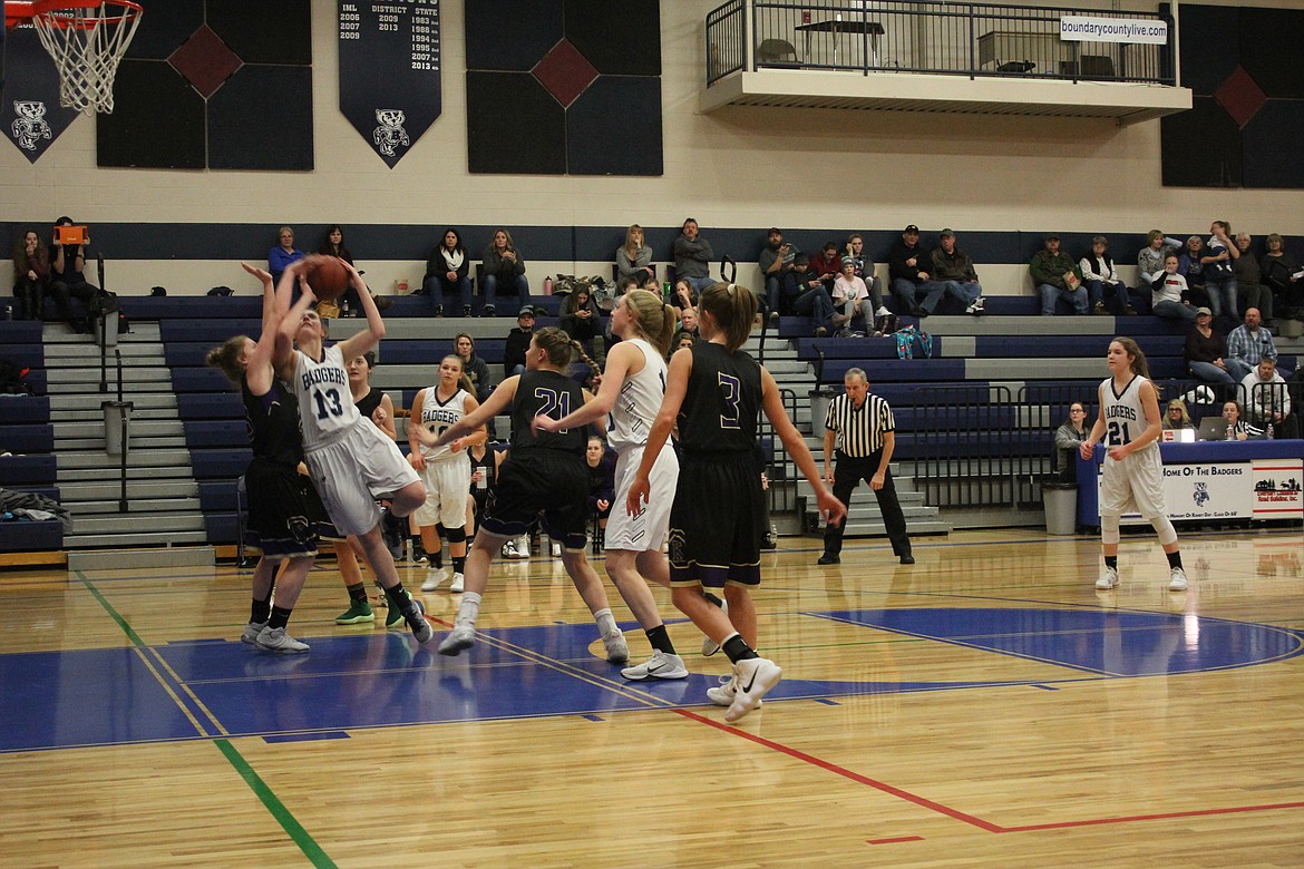 Miranda Wenk led the Lady Badgers with 19 points and 13 rebounds as Bonners Ferry jumped out to a 23-5 first quarter lead and cruised to the victory. Kadi Bateman contributed 11 points and teamed up with fellow senior guard Kassy Skeen to combine for 14 of the team’s 24 steals.