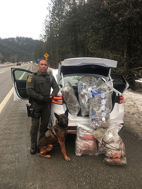 COEUR d’ALENE — A retired school teacher who authorities say drove from Yakima, Wash. east across North Idaho with a dog, 58 pounds of marijuana, a small quantity of methamphetamine and a loaded handgun, is in the Kootenai County Jail on $100,000 bond.