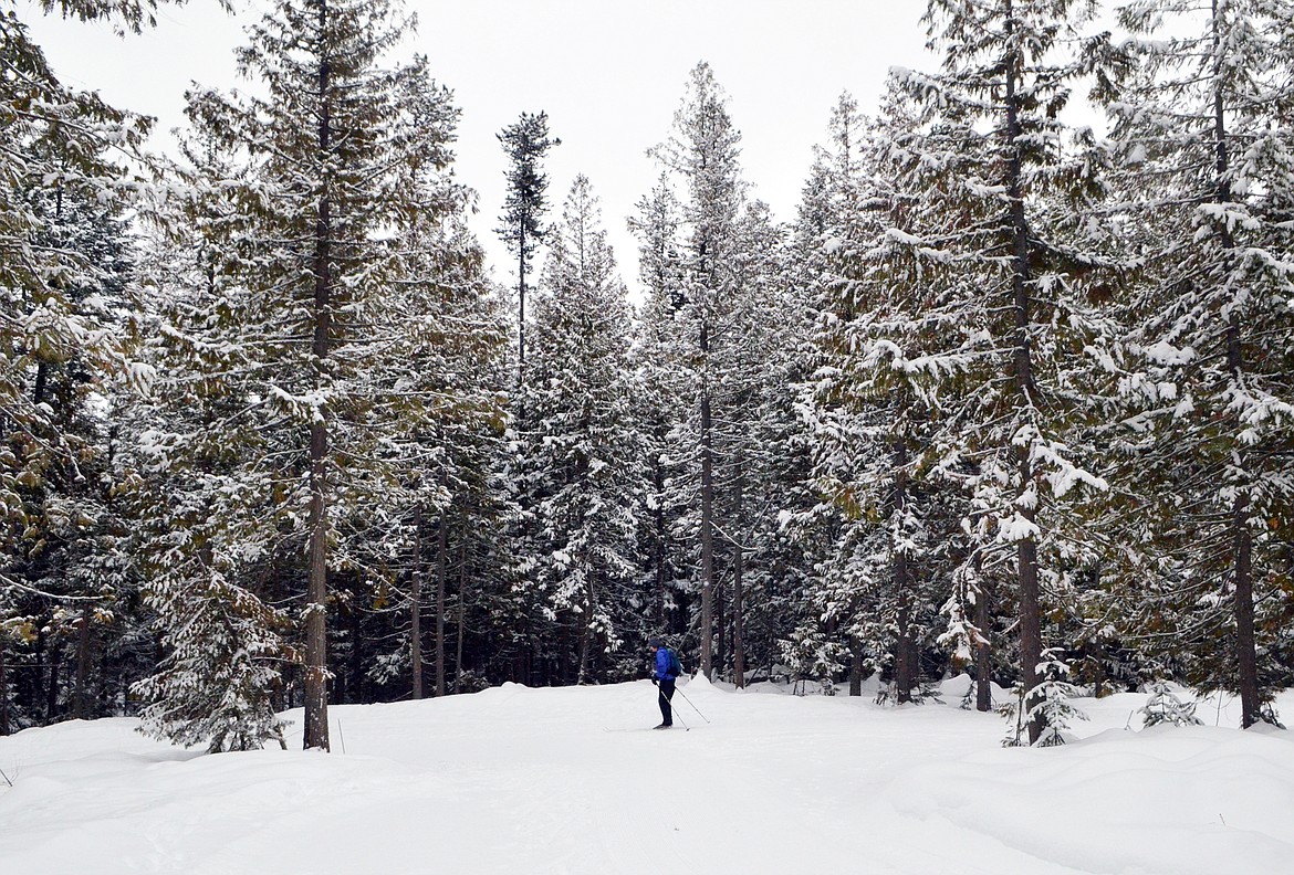 The trailhead accesses 23 kilometers of trails groomed by Glacier Nordic and Iron Horse Golf Club.