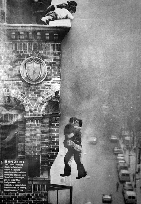Sponsored by Verizon, the ad includes snippets of heartfelt thank-you calls to first responders from people who were rescued. During the 60-second commercial, one of the photographs shows Kevin Shea of Kalispell hanging 12 stories above the ground at Times Square as he rescued a man from a burning building in 1991, when he was a member of the elite Rescue Company No. 1. The snapshot, taken by a New York City newspaper photographer, is a poignant image that epitomizes the danger first responders face on a daily basis.
