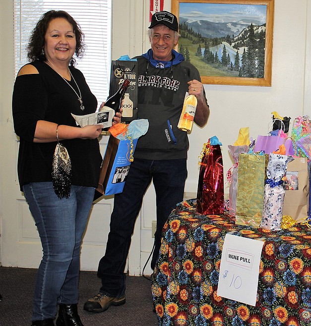 Another part of the evening was a “wine pull” where people could pay $10 and grab a bag which contained a mystery bottle of wine. Florence Evans, who is a librarian for the Mineral County Library in Superior and her husband, Brent, each did the “pull”. Florence got a bottle of red and Brent, a bottle of white, “he’s a red wine drinker, well actually more of a beer drinker,” she laughed.