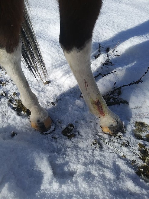 Her horse, Pepper, had gotten caught up in the wire and trees and had cuts on his legs and hind end.