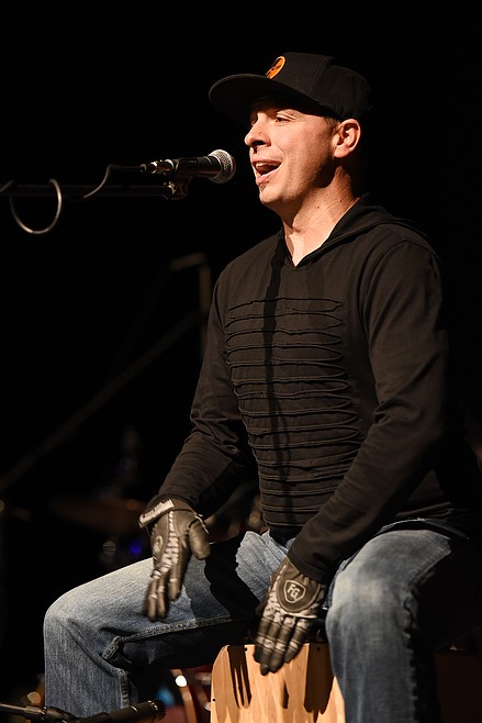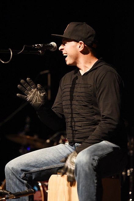 All three sing, but younger Edwards took on the vocal lead, accompanying himself on guitar while his father sang backup and played an instrument called a U-bass, a ukulele that makes a bass sound. Fetveit provided a third harmony and a beat, keeping the rhythm on his cajon, a box-like drumming instrument.
