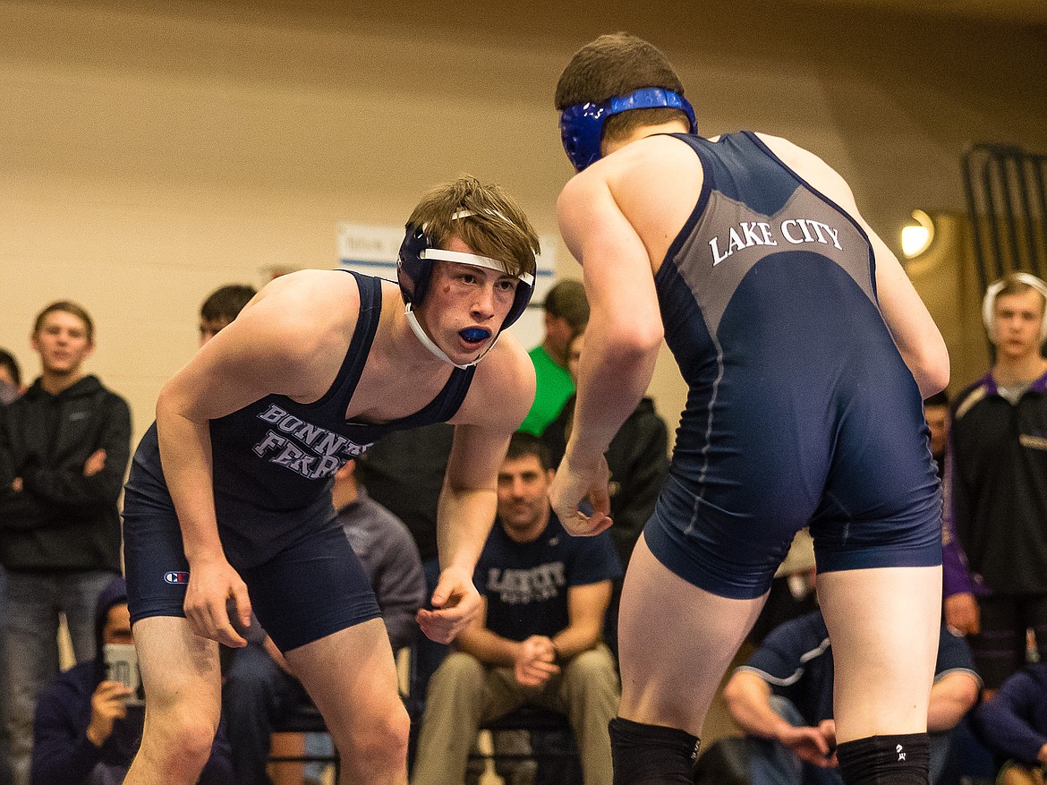 98 — Dakota Eixenberger, Kellogg, d. Austin Madden, Bonners Ferry, 7-5. 106 — Brelane Huber, Post Falls, p. Logan Carrick, Post Falls, 4:18. 113 — Tyler Beazer, Bonners Ferry, d. Devine Hill, Post Falls, 1-0. 120 — Brandon Downs, Priest River, d. Devin Sorrell, Lake City, 5-4. 126 — Trysten Lockridge, St. Maries, d. Torrence Estes, Post Falls, 8-6. 132 — Chad Maas, Bonners Ferry, d. Tristan Shaw, Post Falls, 2-1. 138 — Hayden Villa, St. Maries, d. Mathew Whitcomb, Lake City, 5-3. 145 — Shaun Anderson, St. Maries, d. Aric Fortin, Lake City, 4-2. 152 — Colton Boettcher, Lakeland, p. Gabe Wilson, Lake City, 4:17. 160 — Wyatt Gatten, Lakeland, d. Caden Hall, St. Maries, 8-6. 170 — Hank Steele, Lakeland, p. Jessie Bradley, Bonners Ferry, 1:28. 182 — Hunter Oles, Lakeland, md. Taiga DeLeon, Bonners Ferry, 8-0. 195 — Hayden Berger, Lakeland, d. Mahlon Clark, Lake City, 6-3. 220 — Lucas Gardner, Lakeland, md. Shayne Walker, Bonners Ferry, 10-1. 285 — Sam Feusier, Lakeland, p. Johnny Sullivan, Lakeland, :54.