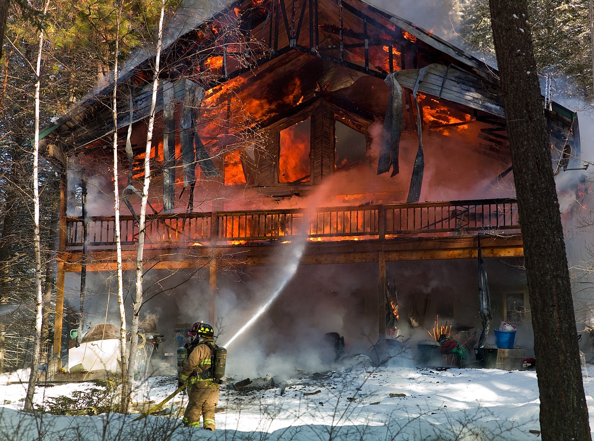 Homeowner Rick Greer said he went outside to let the dogs out and noticed that the back porch was on fire, possibly from embers from the wood stove. By the time he got into the house, it was completely on fire.