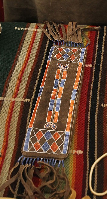 Jean Heinbuch of Weippe, east of Lewiston, brought hand-tanned and smoked hides that tinged the air with a beef jerky-like aroma. Some of her specialty crafts are made with dyed porcupine quills, which is no easy task.