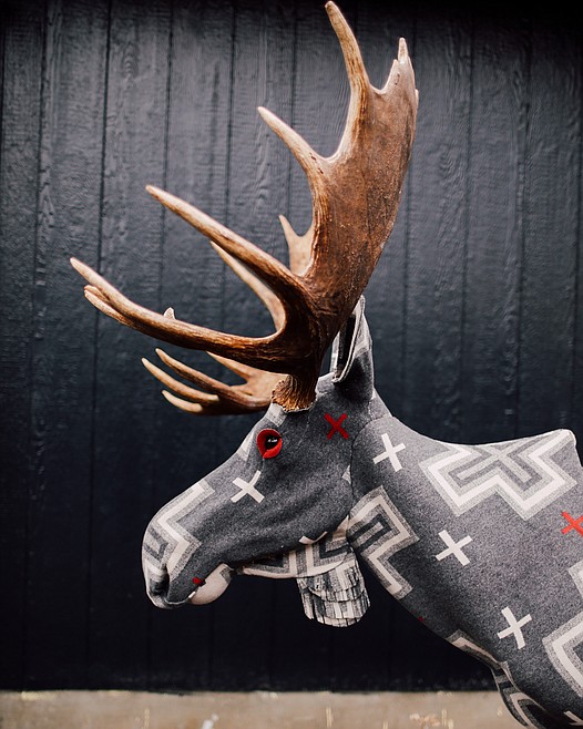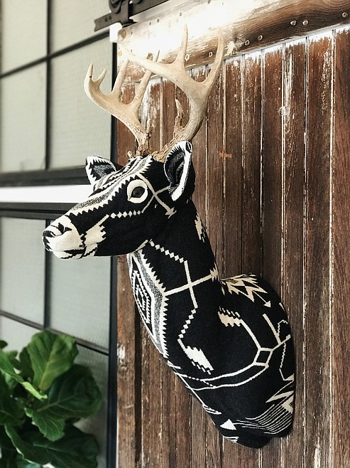 Halland is a full-time artist and the founder of Faraway Lovely, a Coeur d’Alene business that sells creative household goods, but particularly, refashioned taxidermy painstakingly covered in vintage mudcloth and Pendleton fabrics.