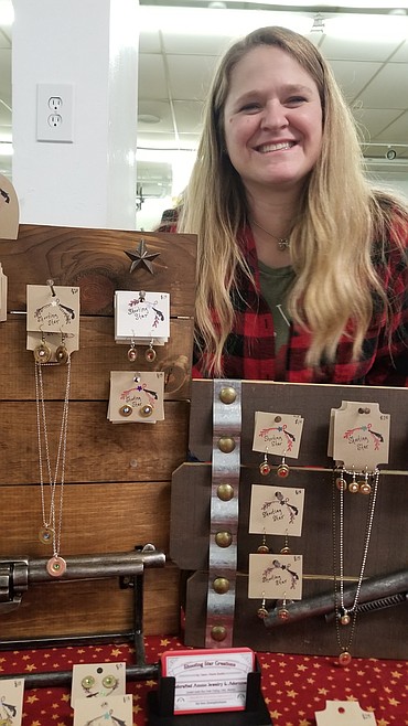 Another vendor, Dawn Smith from Libby, was at the show for the first time with unique jewelry that she spent the winter making, utilizing the primer end of shell casings, combining them with swarovski crystals that she chose for their reputation for being extra sparkling.
