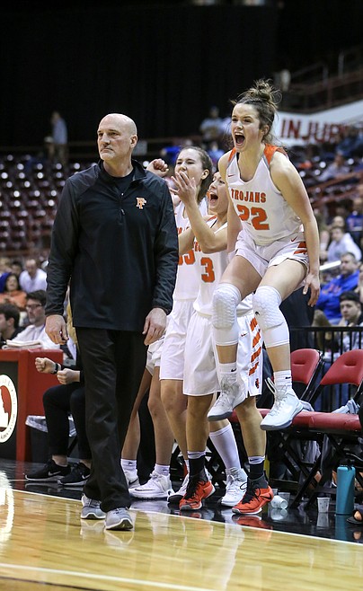 Trailing 50-48 with 2:20 remaining, Tyler McCliment-Call hit a 3-pointer, followed less than a minute later by a 3-pointer by Bayley Brennan and the Post Falls Trojans fought back to down the Capital Eagles of Boise 58-55 in a state girls 5A tournament opening-round game at the Ford Idaho Center.