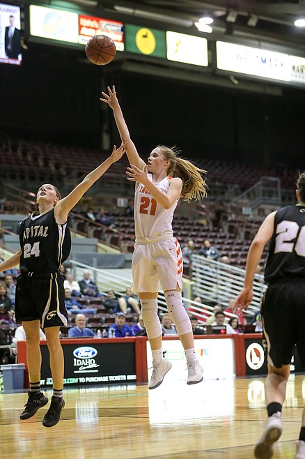 Macky Morris, who rolled her left ankle in the Region 1 championship game vs. Lewiston, came off the bench to grab eight rebounds, six coming in the second half. Bayley Brennan was held scoreless until a jumper with 5:24 remaining in the game. Brennan’s 3-pointer with 1:34 remaining gave Post Falls a 54-50 lead.