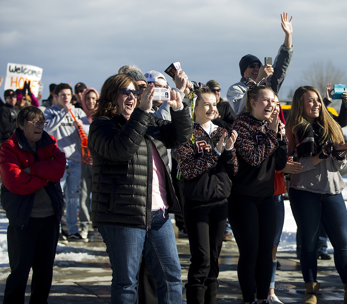 On Monday, the team paraded through Post Falls, escorted by a fire truck before arriving at the school gym for a brief pep rally.