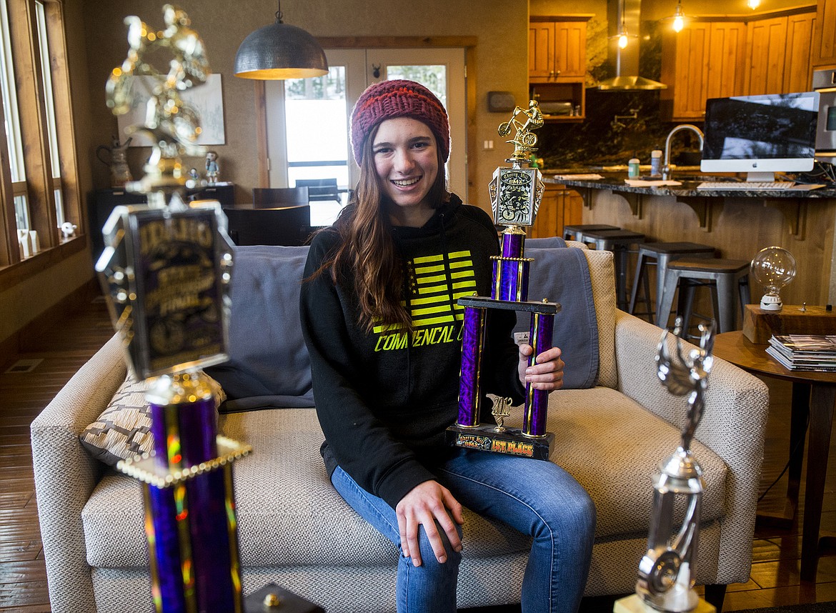 From baby motorcycles to BMX bikes and now downhill racing, Ella has honed this adrenaline love into a competitive pursuit. The Coeur d'Alene Charter Academy freshman boasts more than 100 medals, trophies, plaques and other awards recognizing her talent on two wheels. She often smokes older competitors and has no problem leaving boys in a trail of dust.