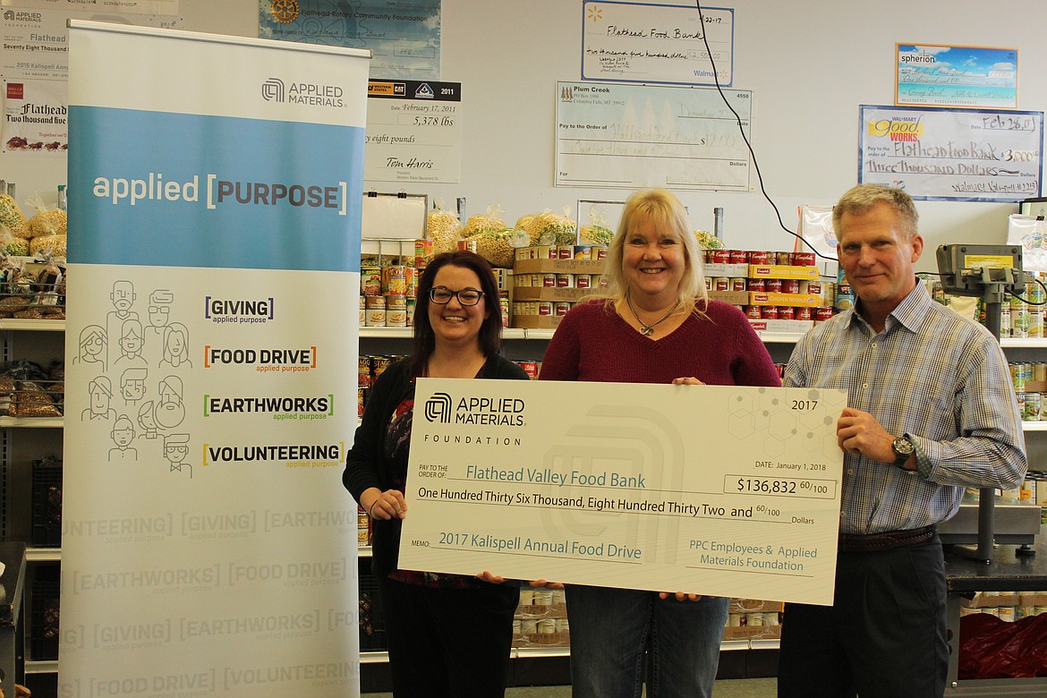 Oversized donation checks, for thousands and tens of thousands of dollars, line the walls of its pantry in the Gateway West Mall. But Applied Materials dwarfed them all with its latest contribution: $136,832.60.