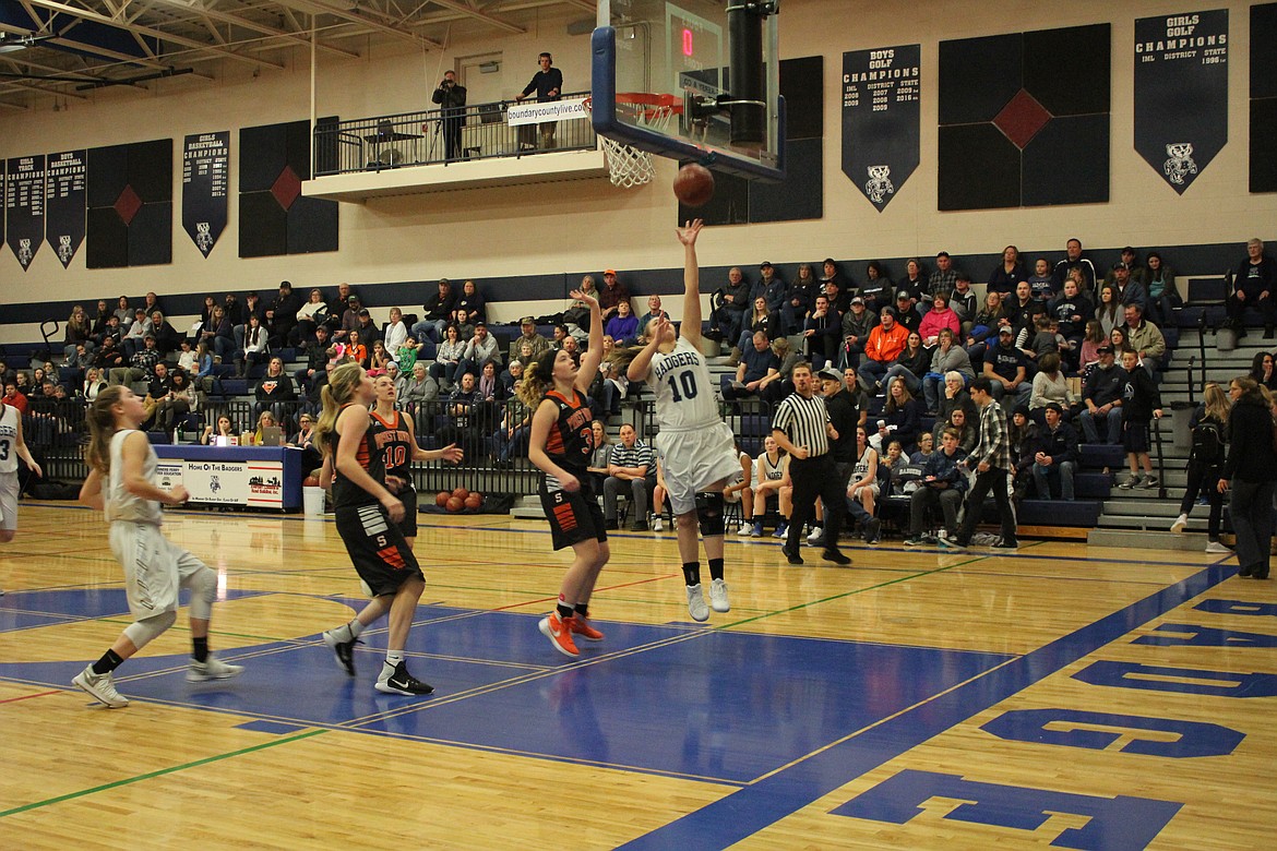 n The Lady Badgers then traveled to Wallace on Friday, Jan. 5, for their 10th road trip in their first 12 games. After building an early 22-2 lead, the Badgers cruised to a 54-20 victory. Kassy Skeen had 10 points and 4 steals to lead a balanced attack where nine Badgers scored. Jerzie Pluid recorded 9 rebounds to go along with her 8 points.