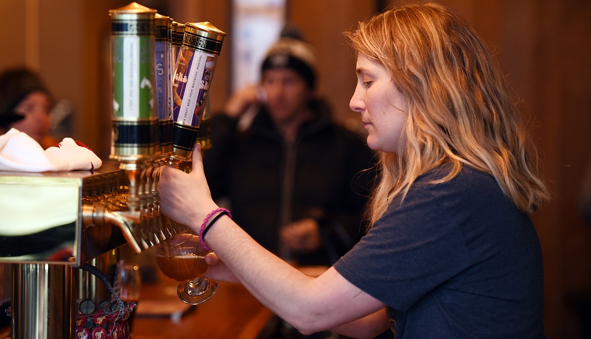 Erin Krueger pours a pitcher of their Ski Socks American Sour at the Great Northern Brewing Company in Whitefish on January 4.(Brenda Ahearn/Daily Inter Lake)