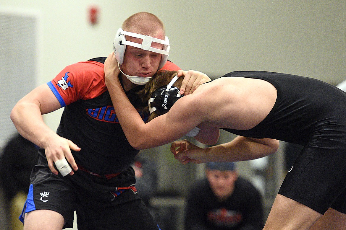 Bigfork’s Logan Kaminsky, one of the top ranked wrestlers in Class B-C at 205 pounds, won by forfeit against Florence, but posted a second-period pin over Lucas Wholtmann of Mission.
