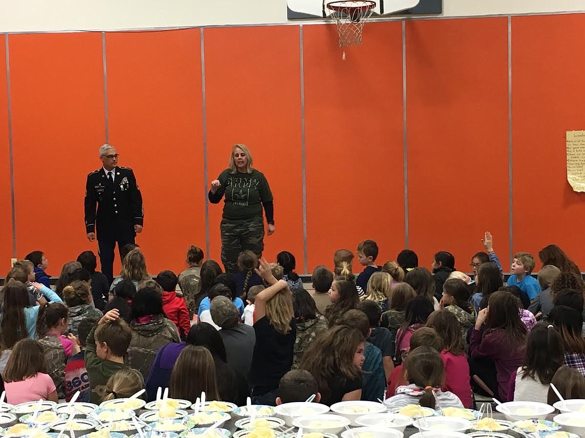 During “Multiplication Boot Camp” at Linderman Elementary in Polson last Thursday, students and teachers dress up in a military theme that differs each day.