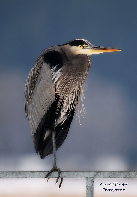 “Blue herons are most often seen ‘fishing’ in streams and wetlands,” said photographer Annie Pflueger. “They hunt rodents in the fields in winter which is pretty cool.”