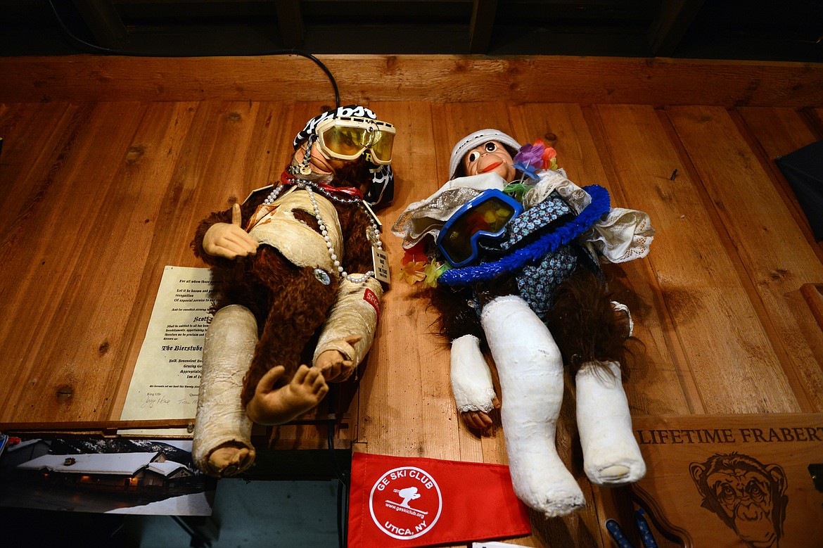 Hundreds of people were packed into the iconic bar to listen and chip in their own two cents. People stood on bar stools and benches to take photos of the storytellers and the famous sock monkey wearing a cast that has been part of the tradition for decades. Afterward, they stayed to partake in the free pitchers of Pabst Blue Ribbon beer that ski patrollers famously pass around, filling the audience’s glasses to end the night.
