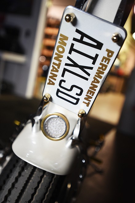 Motorcycles in progress sit on elevated racks inside Hawke Lawshe’s bike shop, Vintage Technologies, in Columbia Falls. Like many mechanical shops of its kind, the place has a well-worn feel: tools, bike parts, old photographs and an American flag in one corner add to the visual cacophony. In the middle of it all, and fittingly so, is the owner and master bike builder.