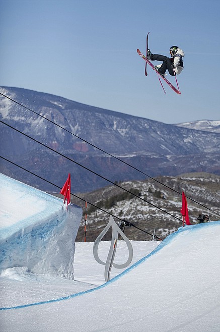 Maggie Voisin skis during her first run in the women’s slopestyle finals in Snowmass, Colo., Sunday, Jan. 14 (Anna Stonehouse/The Aspen Times via AP)