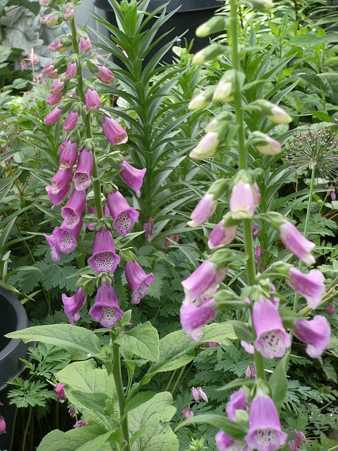 Many of us enjoy growing foxgloves. These are a very interesting plant, in many ways. First of all, they are considered to be a biennial, meaning it takes them two years to bloom. The first year, they produce a short rosette of leaves, the second year, they grow tall with bloom stalks reaching as high as 5 feet. Once you get them established in your yard, you should have both 1st and 2nd year plants, thus assuring you of blooms each year.