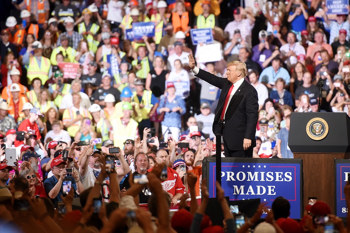 To roaring cheers, waving signs and feet stomping on the bleachers, Trump ended his remarks with words found at many of his previous rallies across the country. “We will make America wealthy again. We will make America strong again. We will make America safe again. And we will make America great again.”