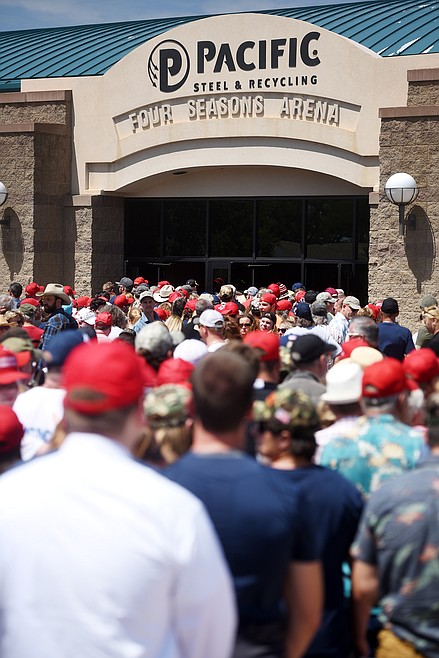 The lines started forming before noon Thursday, hours before President Donald Trump’s scheduled 4 p.m. arrival at Four Seasons Arena in Great Falls. As the temperature climbed, more and more red, white and blue-clad Trump enthusiasts milled around the fairgrounds, bearing the chants that would later echo throughout the arena: “Keep America Great” signs, “Lock Her Up” shirts, “Women for Trump” banners and the now trademark “Make America Great Again” hats.