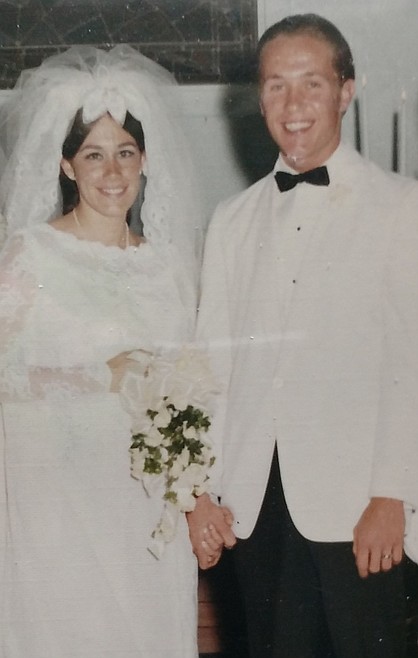 Jim and Mina McAnulty met on the beach in Huntington Beach, Calif. He was a surfer and she was trying to see how tan she could get. This was in 1964. Since he was 15 and she was 17, marriage was the last thing on their minds that day! After four years, they decided to make it official and were married on June 29, 1968, at the quaint little church in Knotts Berry Farm.