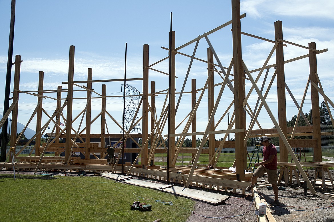 The framework is set and construction continues at the Sapa-Johnsrud Baseball Field in Columbia Falls as crews work to replace the grandstands that were lost in a fire more than two years ago.