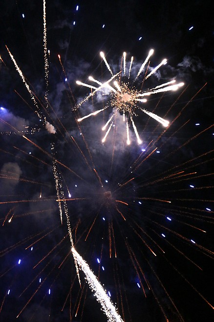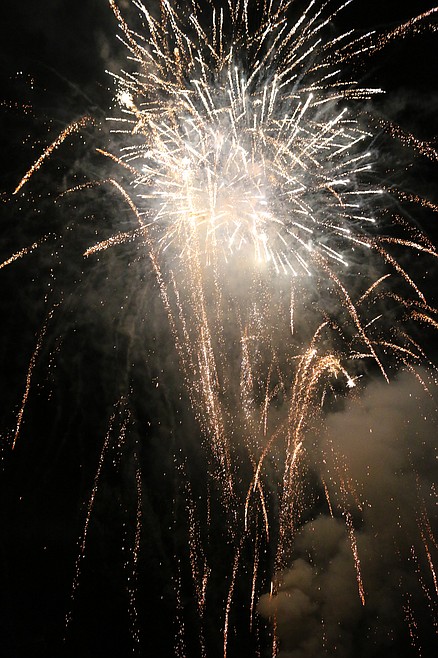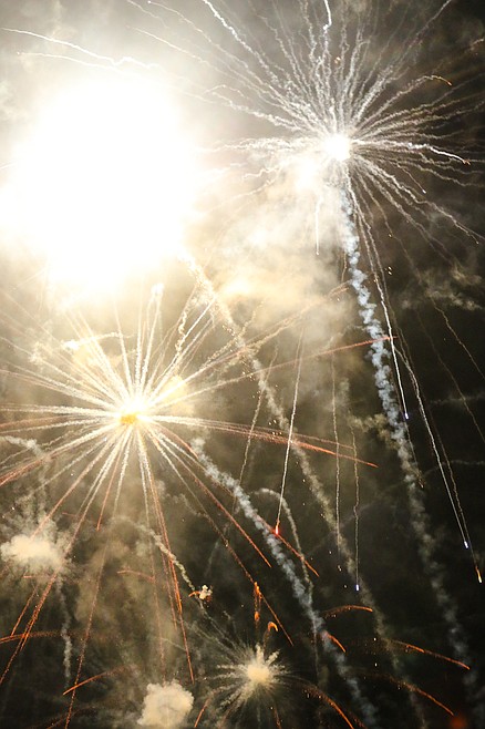 Shortly after 10 p.m., the first firework erupted into the sky, seeming to hover above the spectators heads for a moment before exploding into an array of lights and drifting downward. From there, the show escalated, building and dazzling. For the spectators at the fairgrounds, they enjoyed the fireworks in a way that is nearly impossible in a big city. For them, the explosions of lights appeared right over their heads.