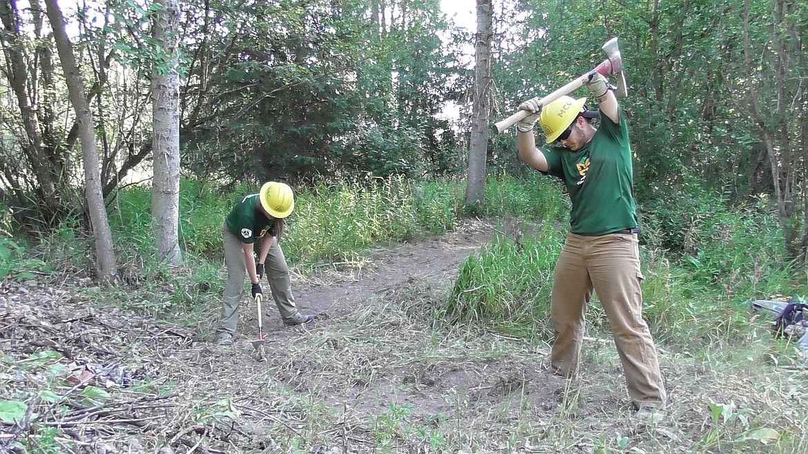 Crews from the Montana Conservation Corps are doing the dirty work of clearing brush and cutting up large trees. Two crews have worked on the trail, making better-than-expected progress.