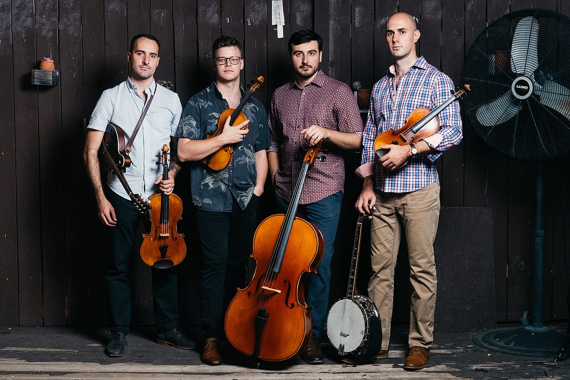 A string quartet with mandolin and banjo? That’s INVOKE, four young virtuoso musicians whose cross-over music spans classical to contemporary. INVOKE personnel includes Nick Montopoli on violin and banjo, Zach Matteson on violin, Karl Mitze on viola and mandolin and Geoff Manyin on cello.