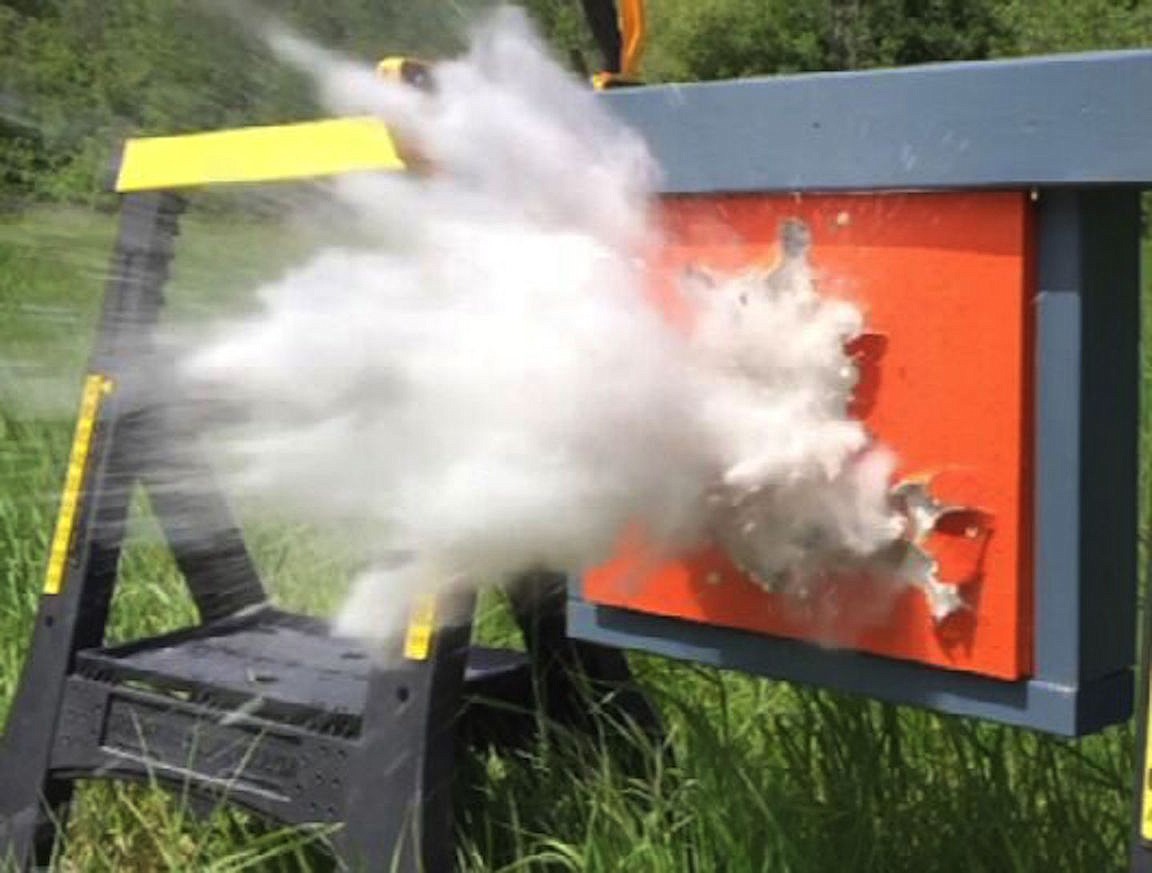 The testing consisted of building sections of wall and filling them with various blends of chemicals, Gidding said, then shooting at each one with several types of firearms ranging from a 9 mm pistol to an AR-15, a 12-gauge shotgun and "everything in between."