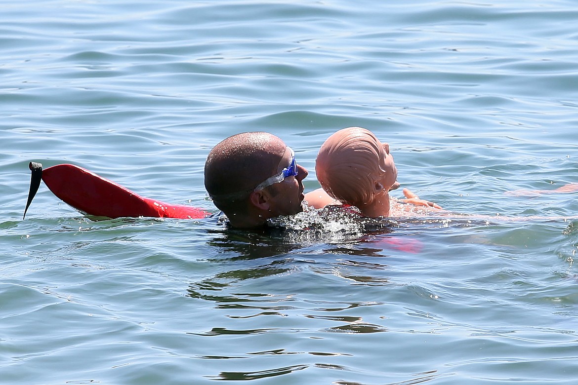 COEUR d’ALENE — Work as a firefighter doesn’t always mean getting hot. On a steamy Tuesday at the beach, members of the Coeur d’Alene Fire Department cooled off in Lake Coeur d’Alene to broaden their lifesaving skill set.