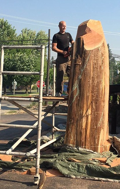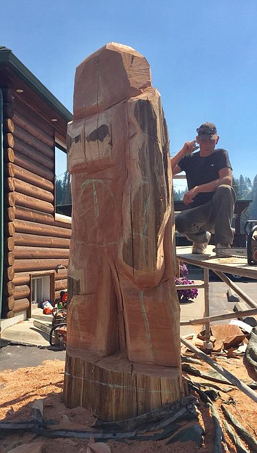 Hans Flynn has been a chainsaw carver for about six years and over the past weekend, he added the log carving at Shelman Realty to his belt of several thousand carvings.