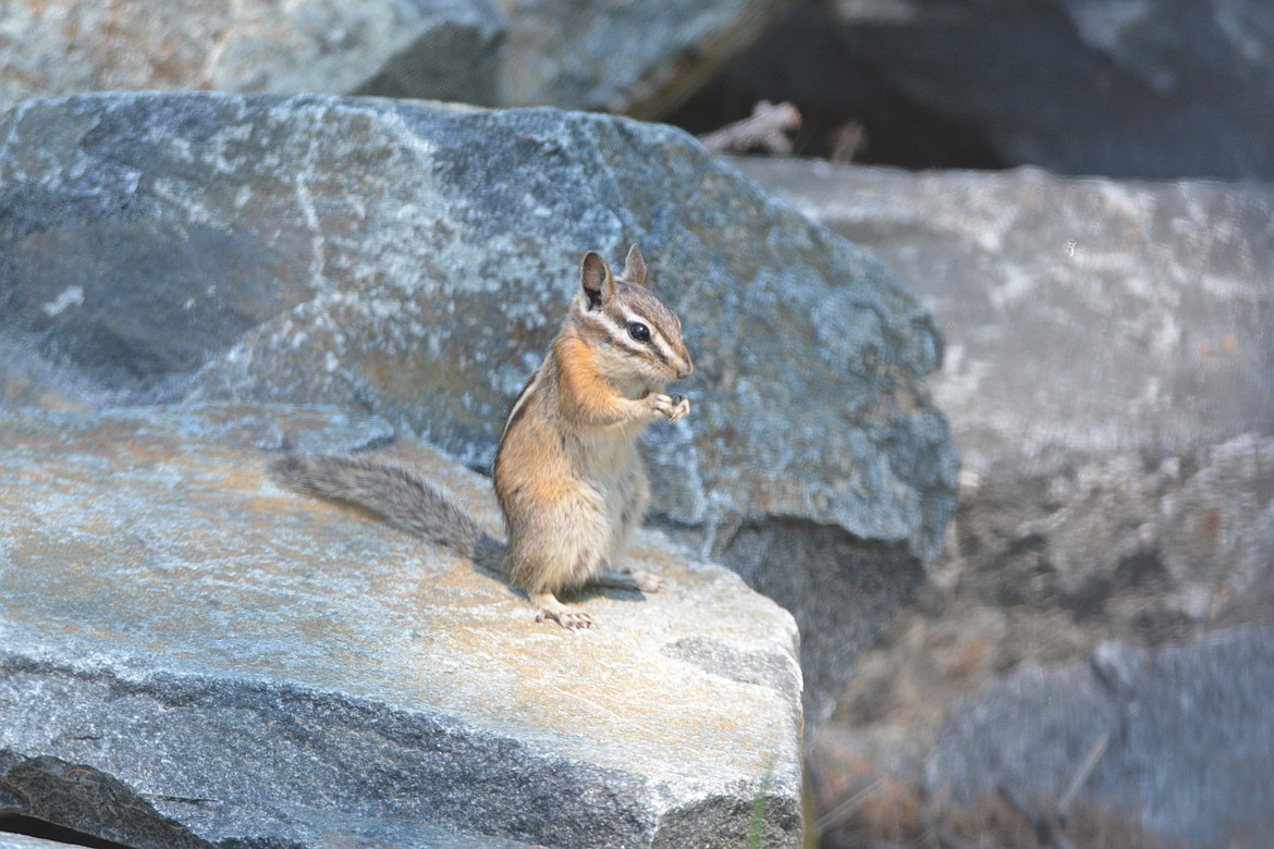 On one sunny morning last week when I was at Brush Lake, I noticed a chipmunk scampering among the rock piles in an area west of the boat ramp road and west of the lake. He was running jerkily and stopping non-discriminately on the rocks pausing only for a minute then continuing his rock hopping.