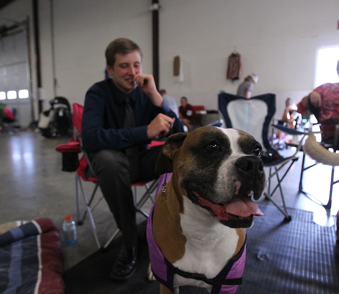 A fabulous boxer named Ali made friends and chilled under a damp purple cover as her boy, Dillon Ducet, 16, of Post Falls, relaxed between sets.