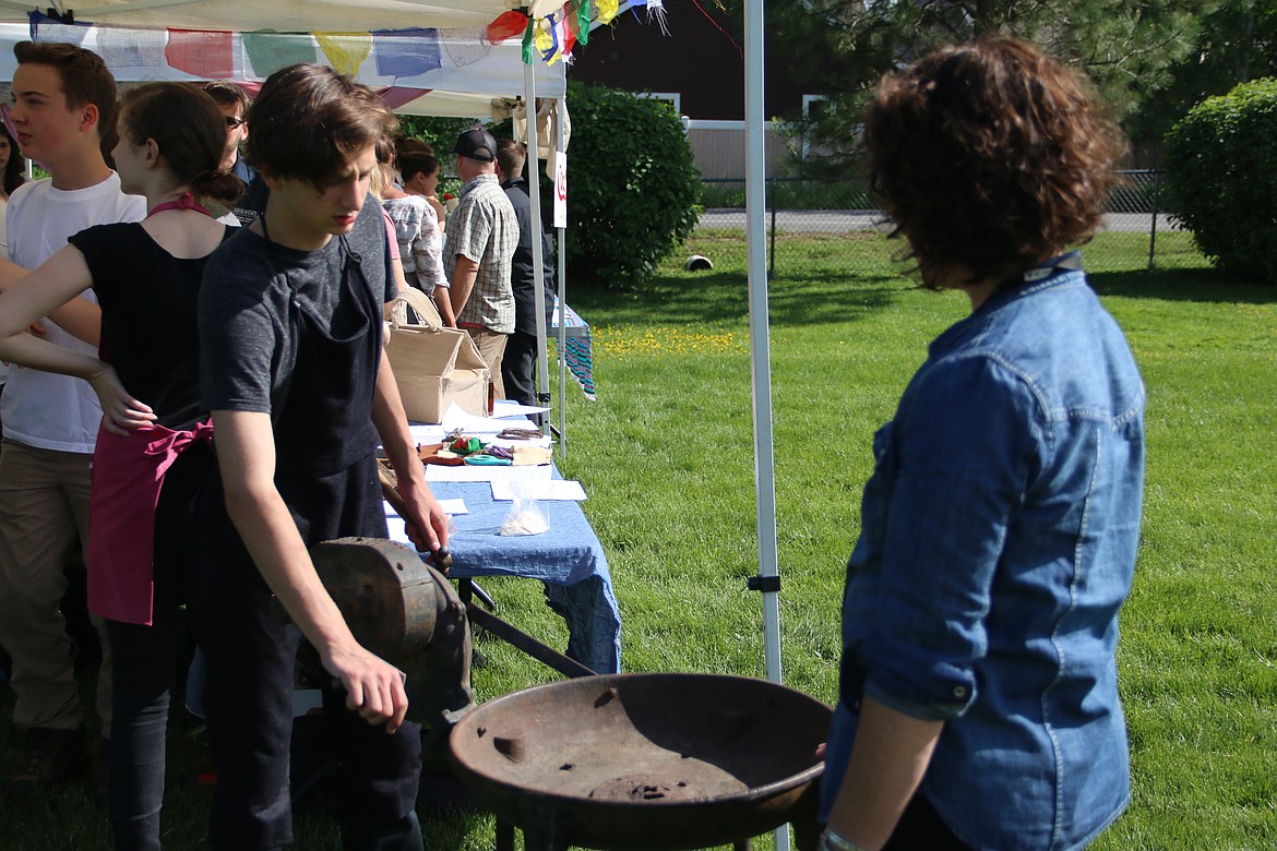 Eighth-grader Conner Hines brought an original 1800s blacksmithing forge to the World's Fair, along with knowledge of how it worked. The blacksmith would put hot coals inside the forge, and among other features described by Conner, a built-in bellows-like device would help heat the coals.