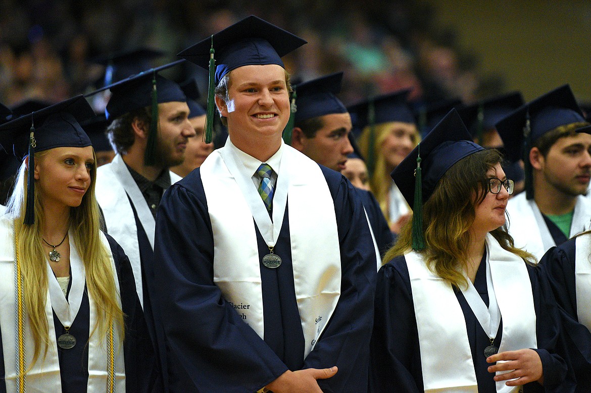 Graduating seniors take their seats at the Glacier High School Class of 2018 commencement on Saturday. (Casey Kreider/Daily Inter Lake)