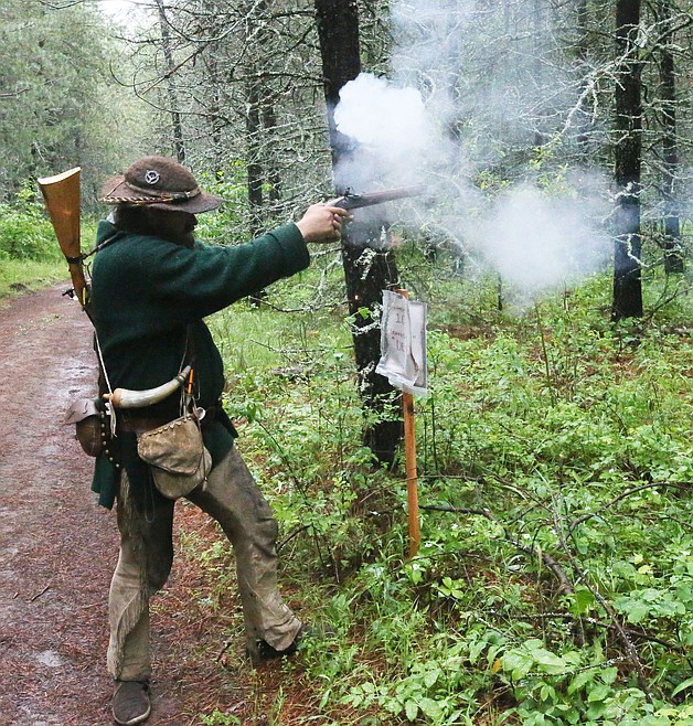 Participants often come to the rendezvous with their eyes on a prize. Having trained with their weapons of choice at monthly shoots — such as smoothbore musket, the tomahawk and knife, bow and arrow, or flintlock pistol — they take aim at a series of targets set up around the rendezvous camp known as trail walks. Competitors can go through each trail walk more than once, but only get scored once in each event, said Rathdrum resident Terry Sellers, aka Two Talks.