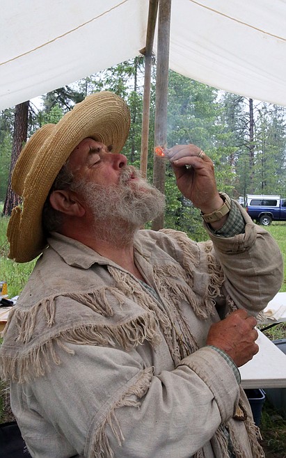 BLANCHARD — They pitched primitive wall tents and pyramid tents. They kept their powder dry, and made sure their tomahawks hit their marks. They swapped tales and traded goods. In other words, the Coeur d’Alene Muzzleloaders kept the old-timey mountain man ways alive at their 3rd Poirier Ranch Rendezvous last weekend.