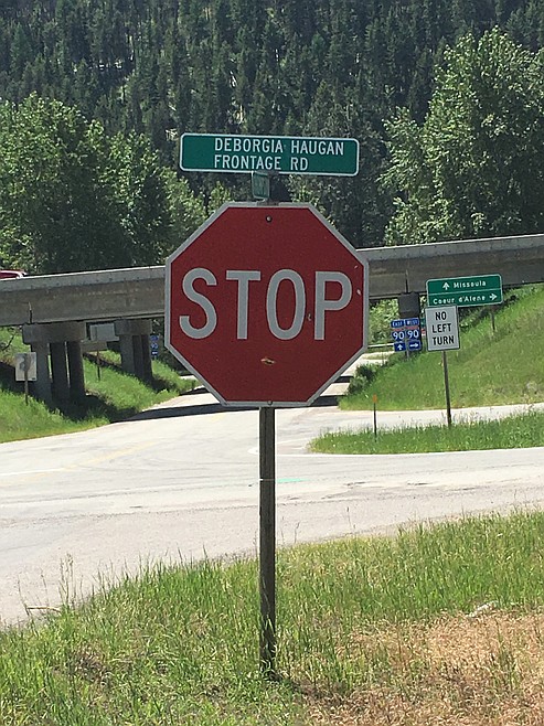 Residents in DeBorgia were thankful to get a traffic sign reinstalled for the intersection of Thompson-DeBorgia and DeBorgia-Haugan Frontage Roads. Michelle Lower who lives in the area, said Jack Robertson who is the head of maintenance for the Lookout rest areas provided information for Russell Carneline with the Department of Transportation. Carneline then took the steps necessary to get the signs installed.