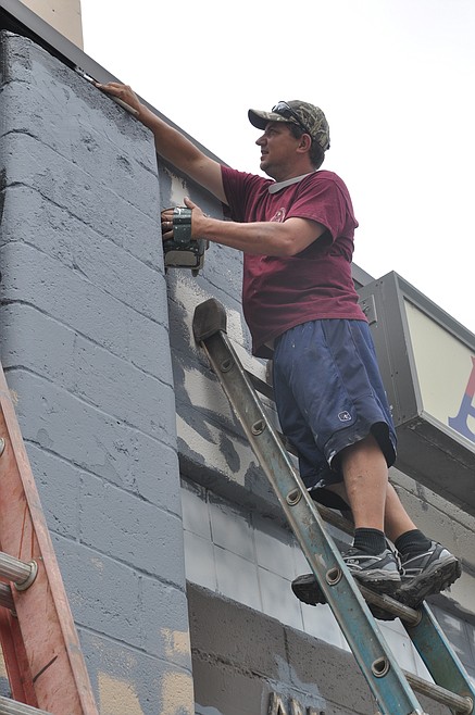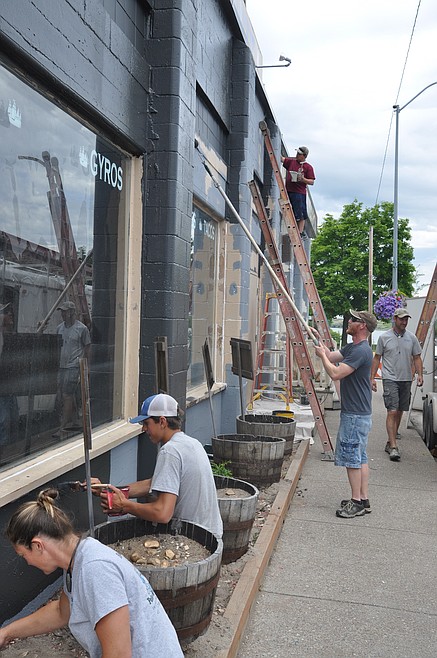 The Cove Deli & Pizza, located at 11 Third Ave. W. in Polson, was still open for business while a crew from Fisher Painting hand-painted the aging brick from a beige hue to black.