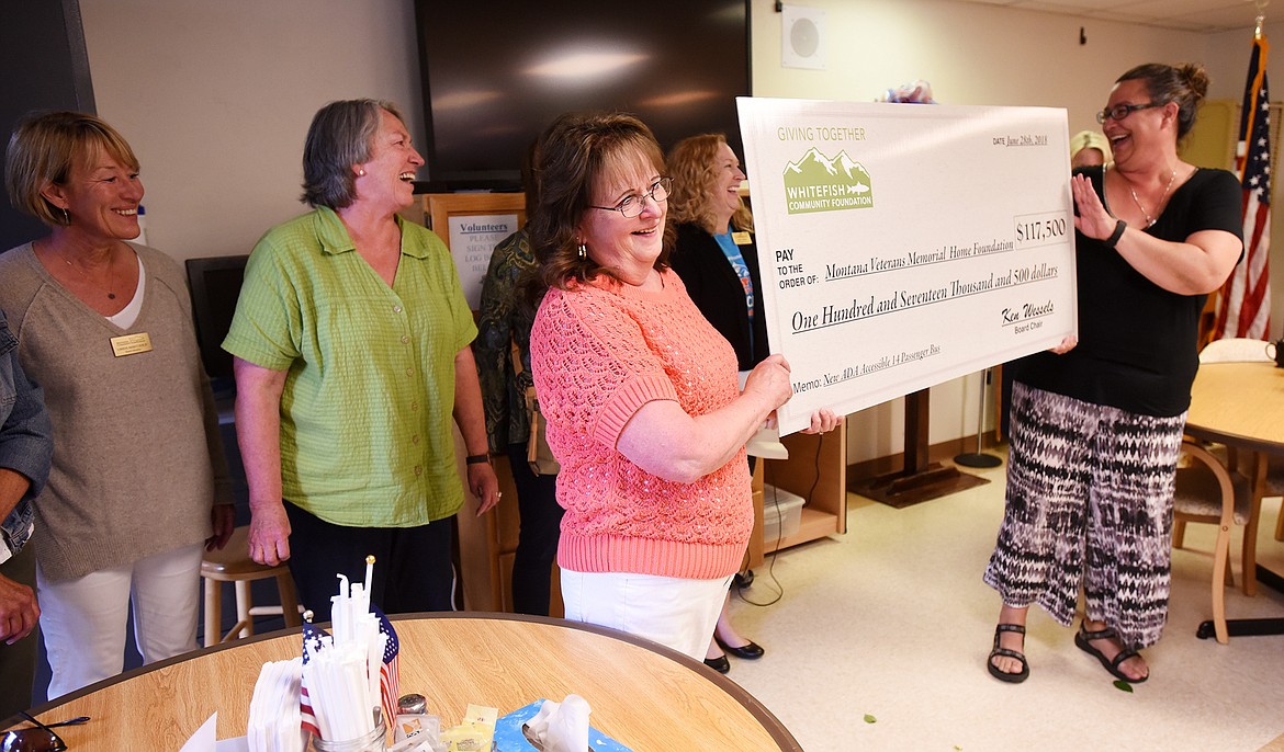 A longtime Montana Veterans Home volunteer’s effort to raise money for a new bus paid off big-time Thursday when the Whitefish Community Foundation presented a surprise donation of $117,500 for a wheelchair-accessible vehicle.