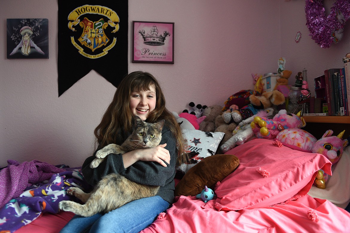 The Coyle family, from left, Elizabeth, Riley, Shannon with cat Honey, Quincy and Luke at their home on Friday, Feb. 23. (Casey Kreider/Daily Inter Lake)